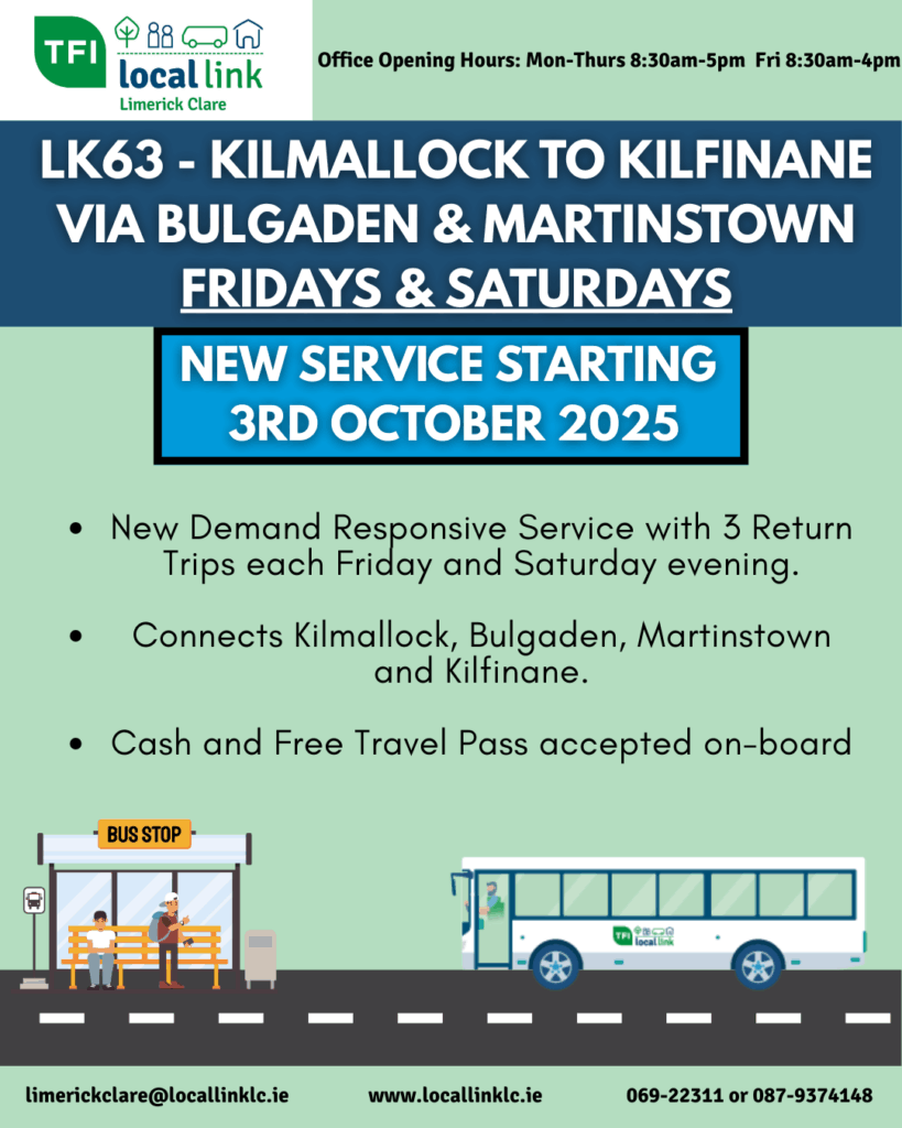 Exciting news for our passengers, TFI Local Link Limerick Clare has amended our LK13 Shanagolden to Newcastle West Service beginning Wednesday 1st October 2025. 🚍 The […]